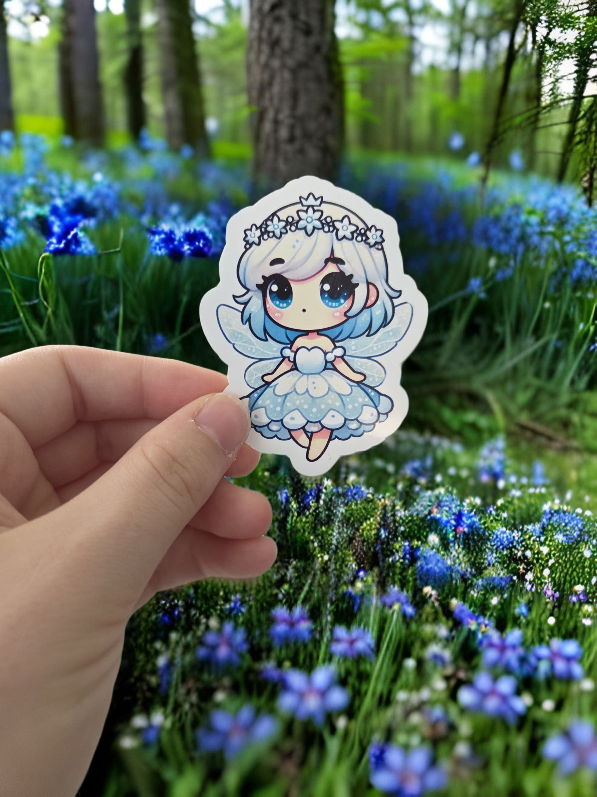 Bring a touch of icy elegance to your sticker collection with this delicate frost fairy! With soft blue hues, floral crown, and sparkling wings, she’s a graceful blend of winter magic and kawaii sweetness. Perfect for fairy tale lovers, snow queens, or anyone who loves ethereal, frosty vibes. Printed on durable vinyl, she’s made to shine on journals, water bottles, laptops, and more.
