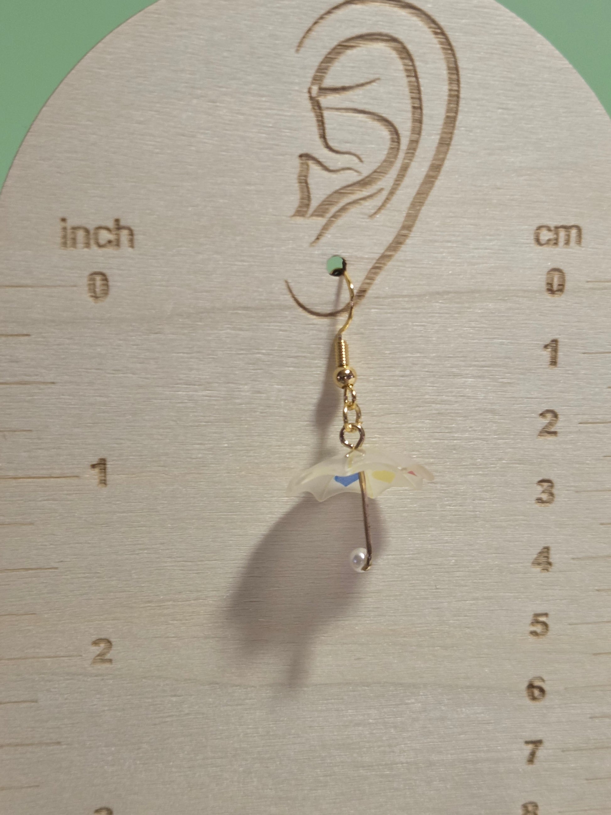 Bring a little sunshine to every rainy day with these magical mini umbrella earrings! Delicately crafted with translucent domes, colorful heart details, and a pearly raindrop at the tip, they’re the perfect blend of charm and cheer. Lightweight and full of personality, these earrings add a splash of fun to any outfit—rain or shine!